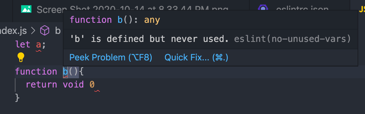 Once everything is set up, you should be able to see eslint highlighting and prettier formatOnSave do its magic! Auto formatting helps with dealing with projects maintain a specific code format.